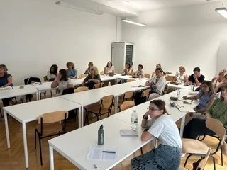 Četvrti znanstveno-stručni simpozij s međunarodnim sudjelovanjem Zamišljeni svjetovi Ive Gruić od 28. do 30. kolovoza održava se na Učiteljskom fakultetu u Zagrebu. U današnjoj popodnevnoj sekciji Dramske aktivnosti u razvoju jezičnih kompetencija predstavljena su dva projektna rada: Mogućnosti jezičnih i dramskih igara u primarnom obrazovanju (autorice: Dunja Pavlicevic-Franic i Katarina Aladrovic Slovacek) i Dramske metode u poučavanju hrvatskoga kao inoga jezika (autorice: Tamara Turza-Bogdan i Lidija Cvikic).